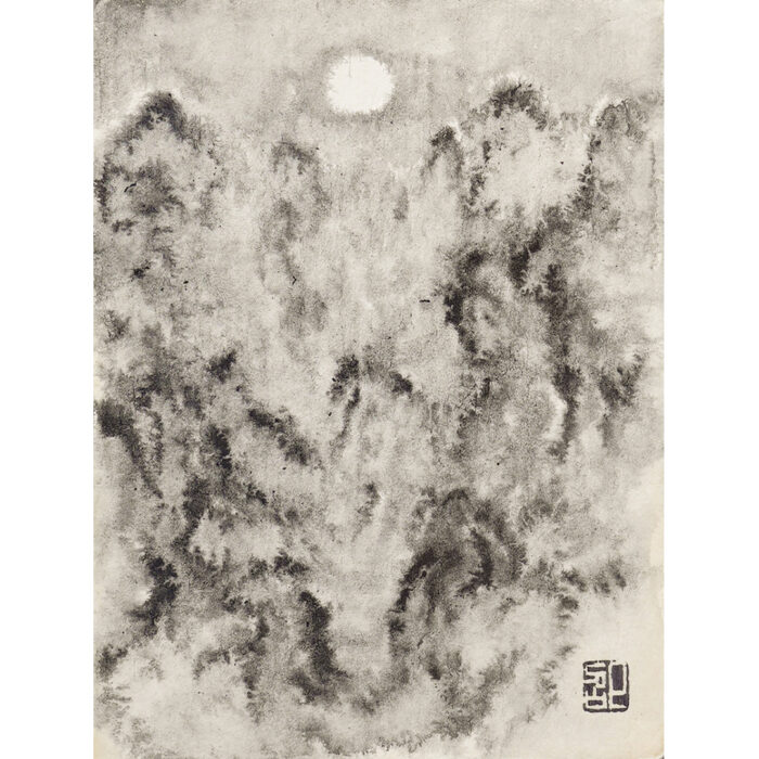 - 下保昭が描いた寒霞渓である。寒霞渓は、香川県の小豆島にある渓谷で、日本三大渓谷美のひとつに数えられる景勝地。多種多様な奇岩や崖地を墨の濃淡やにじみを生かし、力強く描いている。