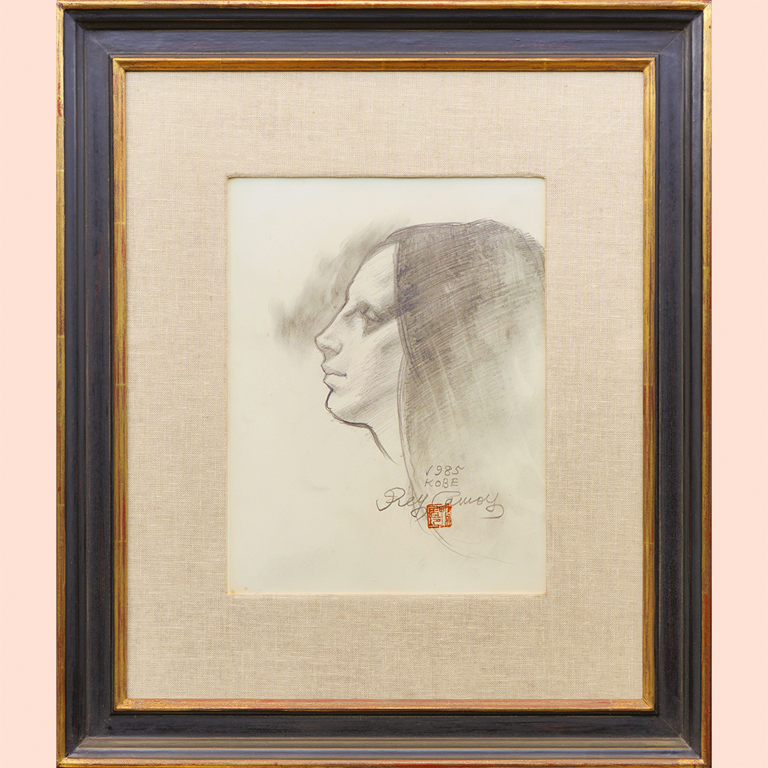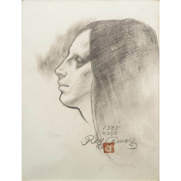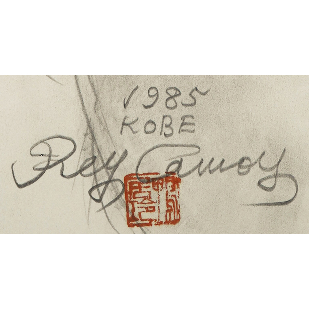 ・画面右下に「1985」・「KOBE」・「Rey Camoy」・印「鴨居玲」