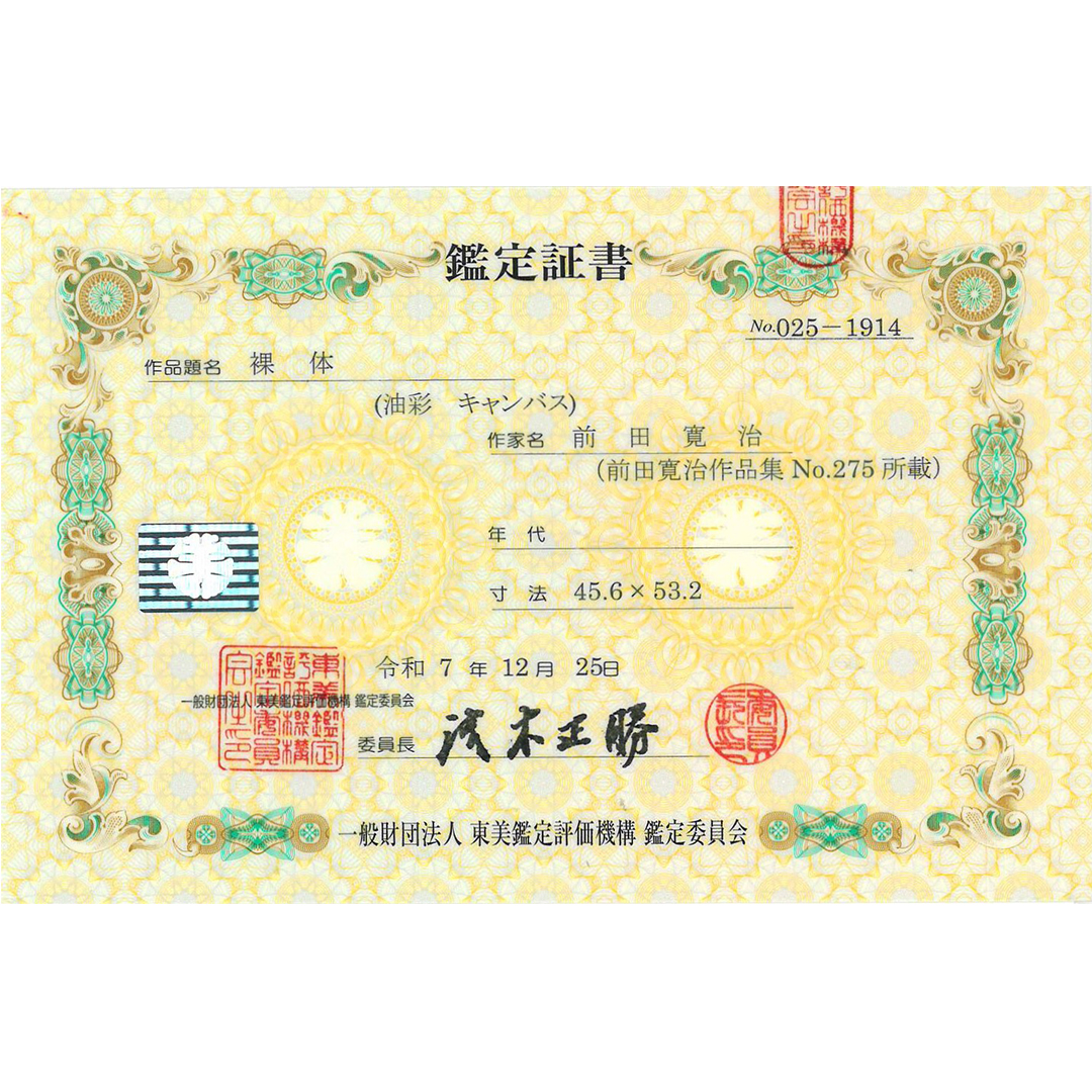 ・キャンバス裏面に天地逆さで「裸体」・「前田寛治」